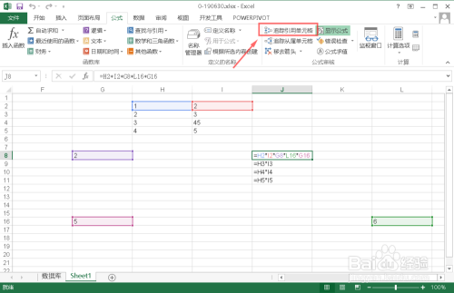 这样就会把公式涉及的单位格用分歧的颜色标识出来。