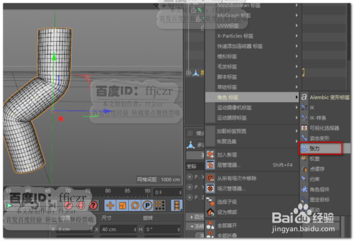 将模子答复到本来没有弯曲的状况,点击张力标签中的固定张力,再点击折叠贴图和伸展贴图中的生当作贴图。如图所示。