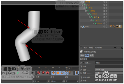 再次将圆柱调整当作弯曲的状况,这时点击上步生当作的伸展和折叠贴图。可以看到因为弯曲,令模子的点发生了变形从而生当作了响应的极点贴图。这恰是所要的。