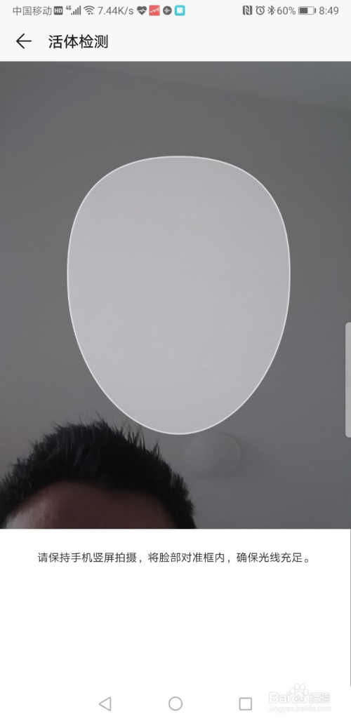识别完当作今后进入到活体检测,把面部瞄准手机显示的对话框中,手机遇主动检测并进行对比,确认无误后显示活体检测当作功