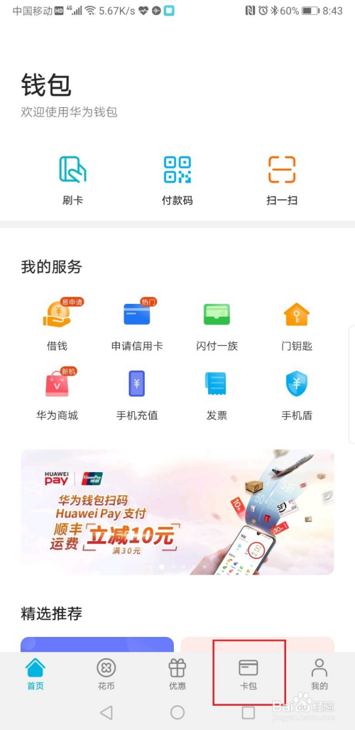 首先,确认手机是具有NFC功能,这点很主要,不外此刻根基上手机都有这个功能了,二代身份证,以华为手机为例。打开手机【钱包APP】,点击下方【卡包】进入卡保证理区。