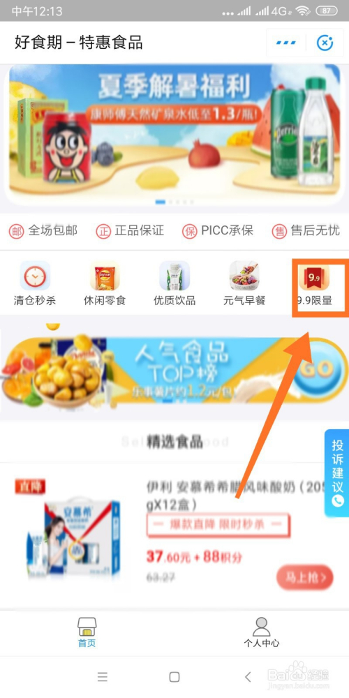 - 7如图所示,找到最边上的“9.9限量”,点击进入就可以看到良多9.9元的食物啦。