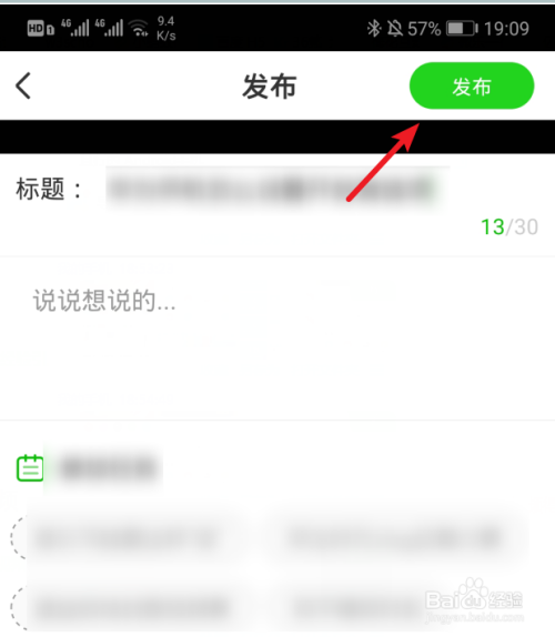 填写完毕后,点击右上方的发布选项。若是填写不完整,右上方的发布图标为灰色。