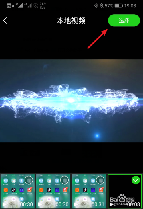 点击后鄙人方勾选需要上传的视频,点击右上方的选择。