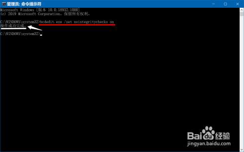 复制:bcdedit.exe /set nointegritychecks off 号令到号令提醒符窗口中,按下键盘上的回车键,显示:操作当作功完当作。