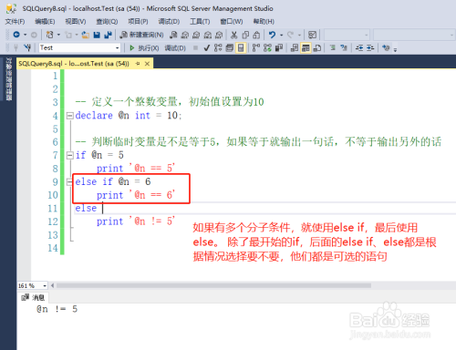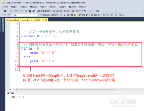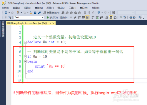 利用if前提语句,判定上面的姑且变量是否等于10,若是等于就输出一行文字。此处演示的是sql语句尺度的if写法