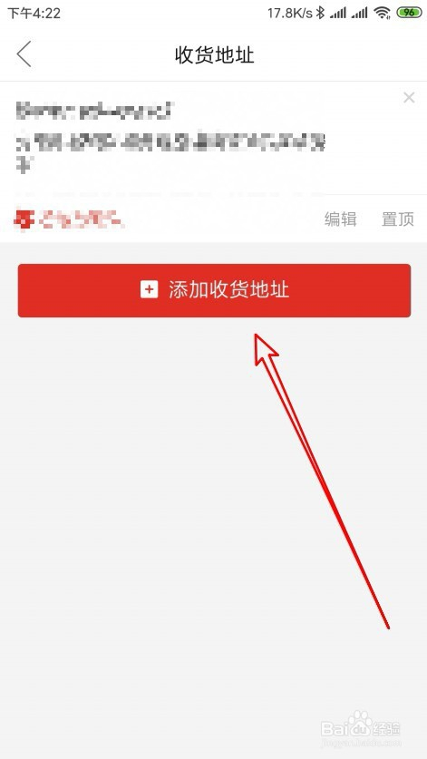 然后在打开的收货地址页面中,点击添加收货地址的按钮