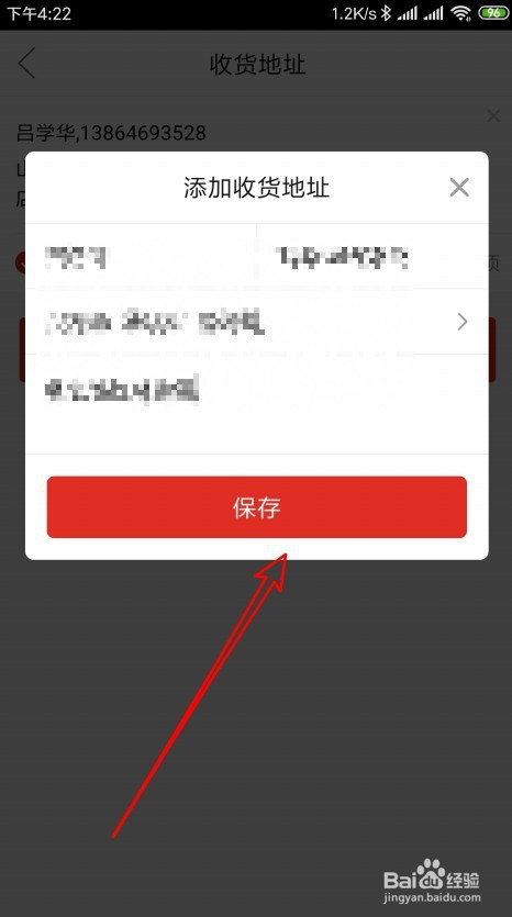 接下来就会弹出添加收货地址的页面,在页面中输入新的收货地址,然后点击保留按钮