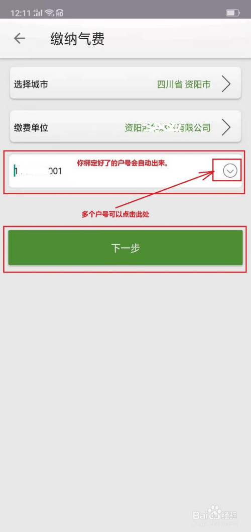 选好户号后点击“下一步”按纽。