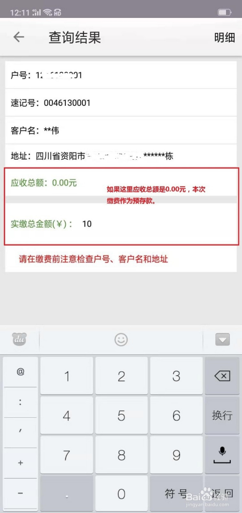输入缴费金额。