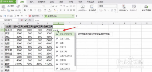 可以在F2中输入=su,此时会主动呈现以su开首的函数列表,按上下偏向键可以切换选中函数;