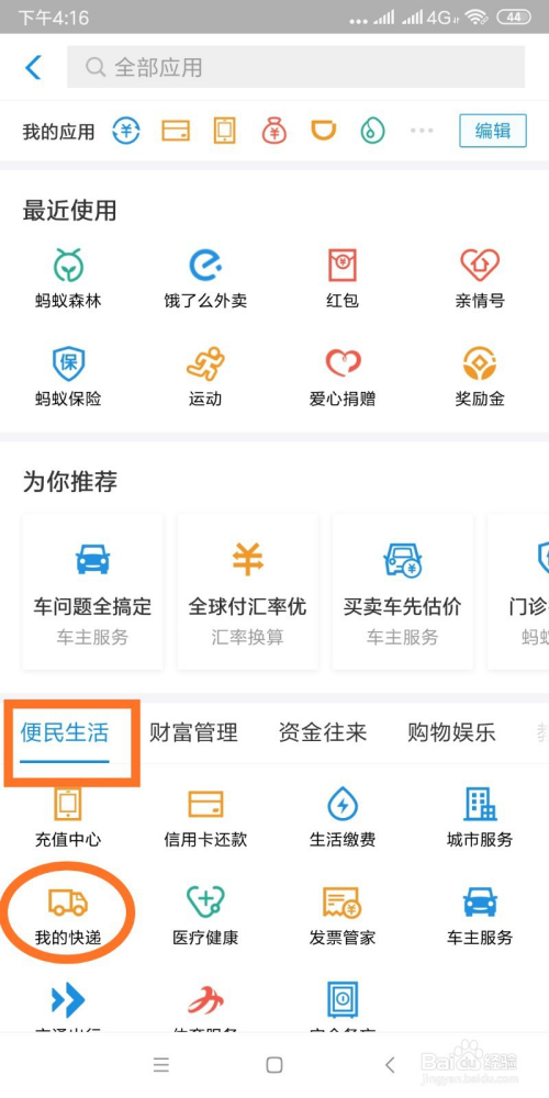 - 3在该页面的下方找到“便平易近糊口”,在点击“便平易近糊口”下方的“我的快递”即可。