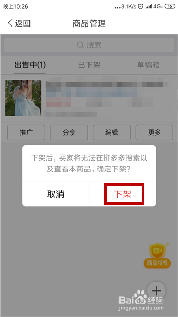 下架之前我们还需要再次确认一遍商品是否下架,再次点击【下架】。