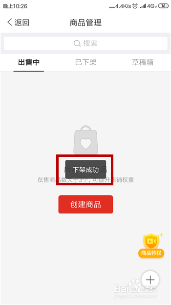 这样会在界面中呈现【下架当作功】的提醒,此时就下架了我们在售的商品。