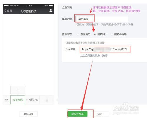2 输入菜单名 , 建议为"会员系统/会员办理/俱乐部官网"等 (按照俱乐部自行编纂)