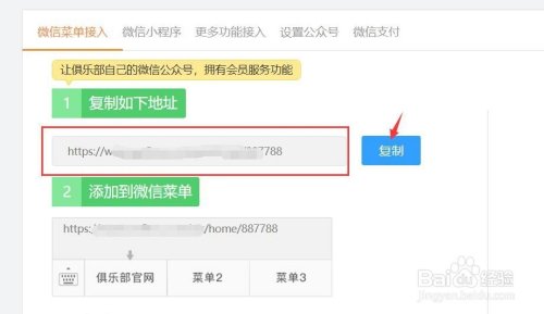 1、打开微信办理——复制俱乐部系统内毗连。(下图1.2)
