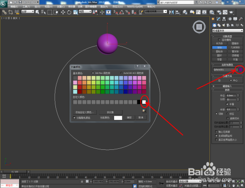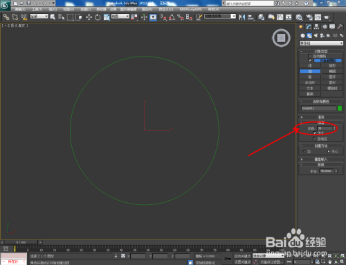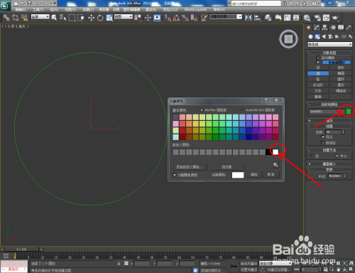 打开3Dmax2012软件,点击【建立】-【图形】-【圆】,绘制出一个圆形图案,半径设为:40mm作为手串的系线。点击【对象颜色】将图案的对象颜色设置为:白色;