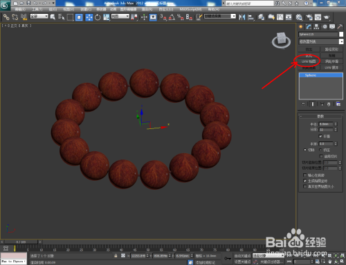 选中珠子模子,点击【点窜】-【UVW贴图】,勾选长方体,为模子添加一个UVW贴图。点击【衬着】-【衬着设置】,按图示设置好输出大小等各个参数后,点击【衬着】将建造好的紫檀手串衬着出图即可。