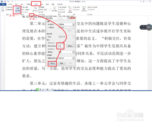 首先用word打开要编纂的论文,这里利用word2013打开编纂,然后把鼠标移动到引用数据的末从头至尾并点击一下。