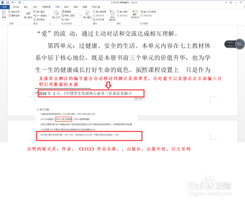 第三,直接双击脚注的编号就会主动移动到脚注从头至尾部那边,这时就可以直接在在后面输入注明引用数据的来历了。