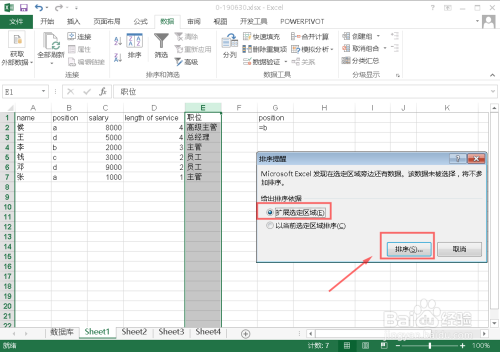 弹出排序提醒后,勾选扩展选定区域,点击排序。