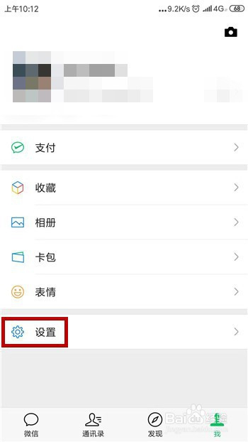 然后会打开微信的小我中间,在这里找到【设置】功能并点击打开。
