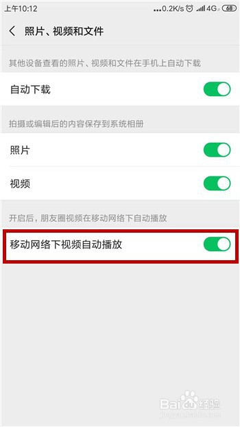 打开后就可以看到【移动收集下视频移动播放】,点击后方的开关封闭它。
