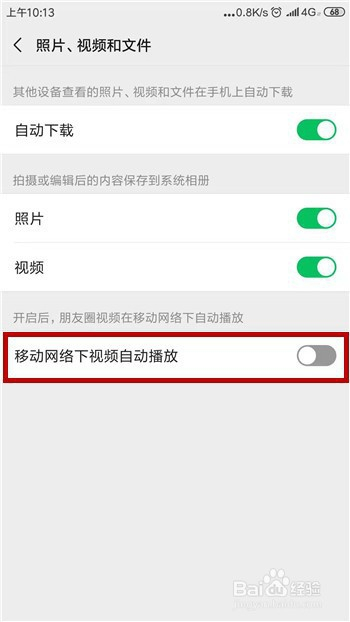当我们封闭了【移动收集下视频移动播放】功能后就封闭了视频的主动播放。