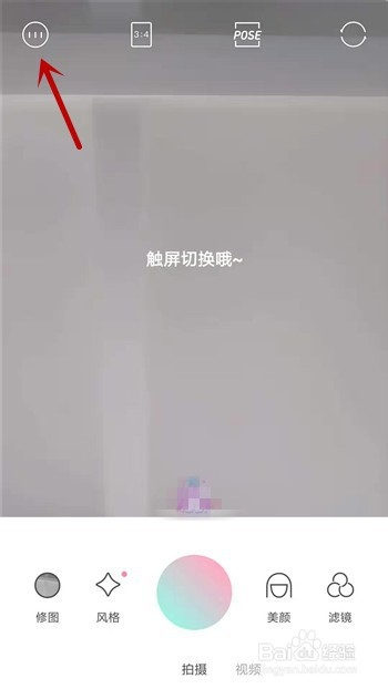 再次来到轻颜相机的摄影界面,点击左上角的第一个按钮,如图所示。