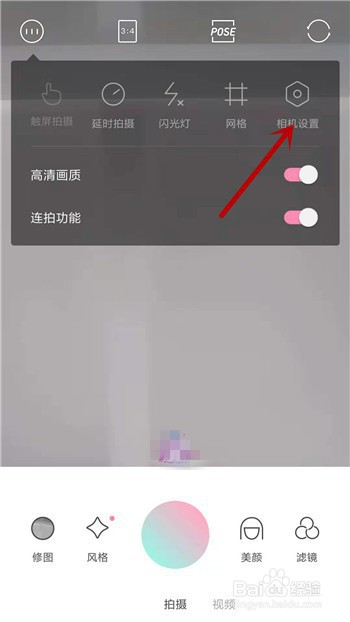 然后会呈现一个界面,我们需要找到【相机设置】功能并点击。