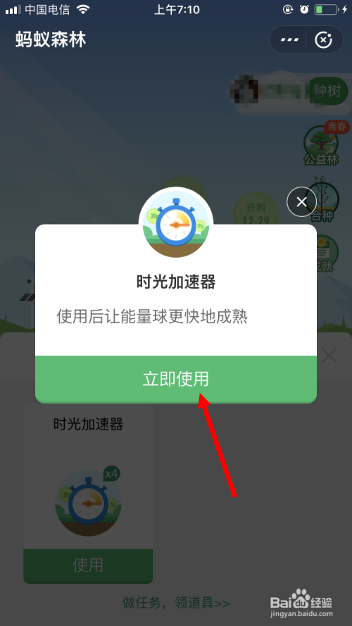 弹出对话框后,点击 当即利用 。利用后让能量球更快地当作熟 。