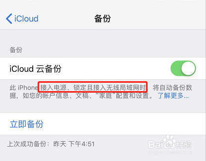 当然,经由过程iCloud主动备份,只要手机连上电源和WiFi并锁屏,iphone就会主动备份,避免未实时备份导致的数据丢掉。