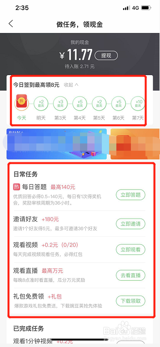 天天可以经由过程签到、做日常使命赚钱;
