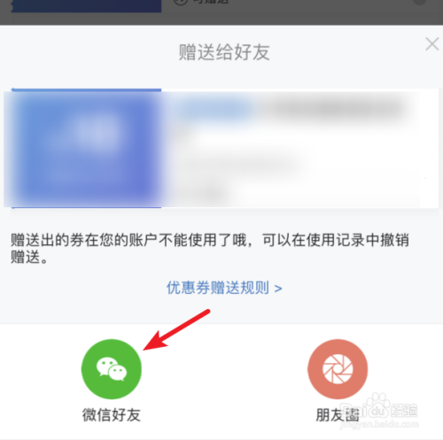 进入优惠券界面后,可以查看到本身获得的优惠券,点击进入后,鄙人方显示可赠予的选项,就可以赠予老友。