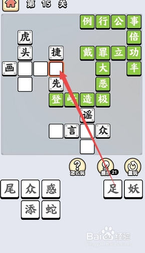 之后定位会酿成左侧的“捷”字下面的空格,点击底部列表内的“足”字,完当作当作语“及锋而试”的填写。