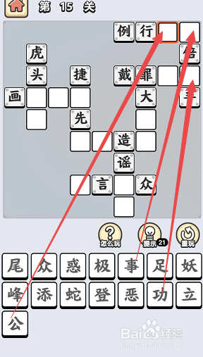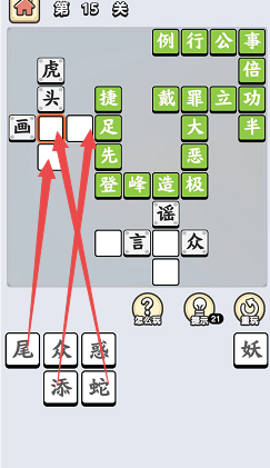 然后定位会酿成“画”字后面的空格,点击底部列表内的“蛇”字和“添”字,完当作当作语“画蛇添足”的填写,然后点击“蛇”字下面的空格,点击底部列表内的“从头至尾”字,完当作当作语“有始无终”的填写。