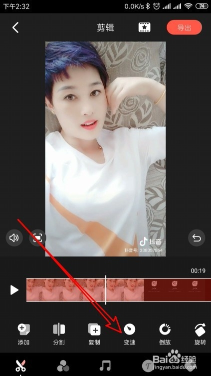 然后点击视频剪辑东西栏上的变速图标