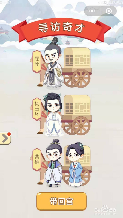 最后我们可以回到首页,点击“求贤”,在三辆马车中选择一辆,就可以随机带回一小我啦