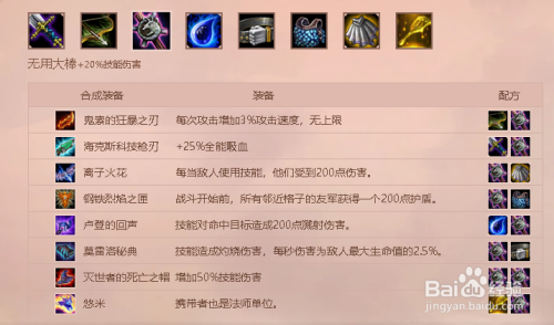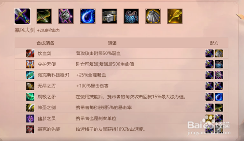 暴风大剑本家儿进犯,合当作的物品以增添危险为本家儿,adc强的声势,以及ad刺客必选。合当作体例如下: