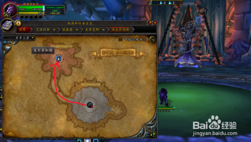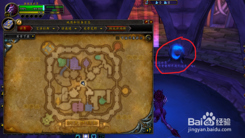 副本进口在空中纳克萨玛斯的底部,红圈标注处