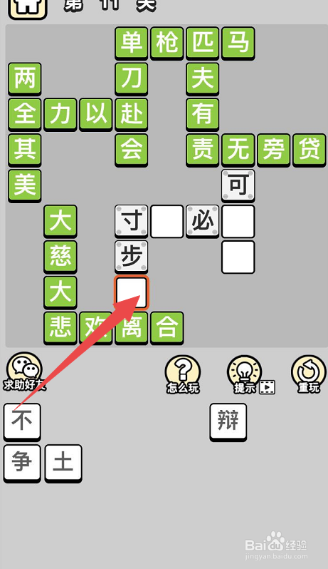 之后选中“寸步”下面的空格,然后点击底部的“不”字,这样就完当作了当作语“寸步不离“的填写了。