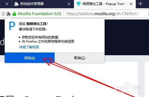 这时Firefox浏览器就会主动的下载并安装插件,我们点击弹出的添加按钮。