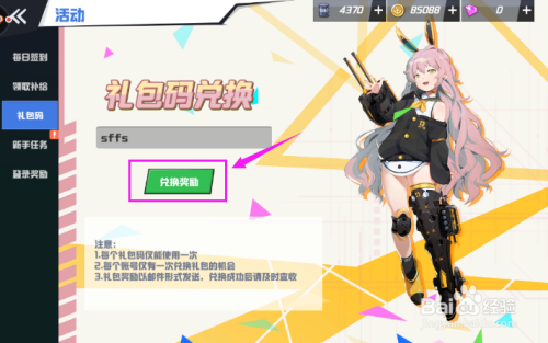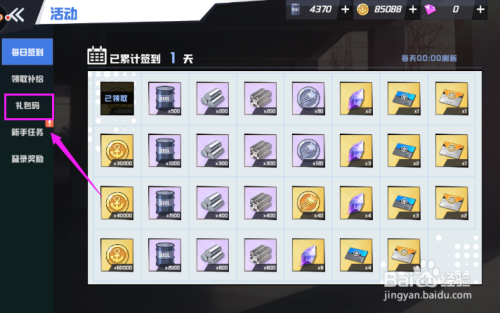 【活动界面】里接着按开【礼包码】,如图。