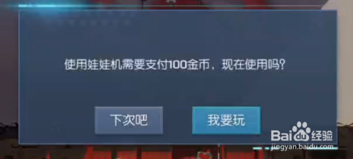我们点击抓娃娃机之后,我们是需要破费100金币才可以玩的哦。