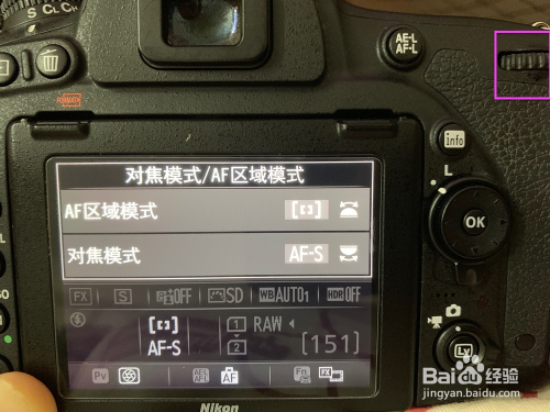 拨动拨轮,直到对焦模式为AF-C,回到本家儿界面也是AF-C
