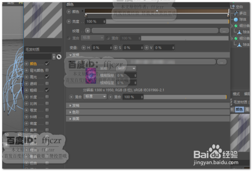 双击毛发材质,在颜色材质通道中睁开发根选项,在纹理中添加一个带有多种颜色的图片(该图片的颜色就是毛发的颜色)。