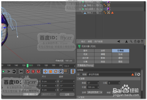 毛发对象指导线项中,数目值为57,分段为8,长度为100.点播放选用一帧衬着即可看到生当作的毛发结果。默认的毛发颜色不是所要的。