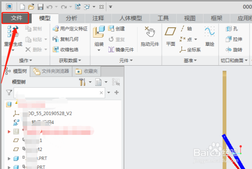 打开一个Creo5.0的装配图,为了区分,我们简单着色了一下