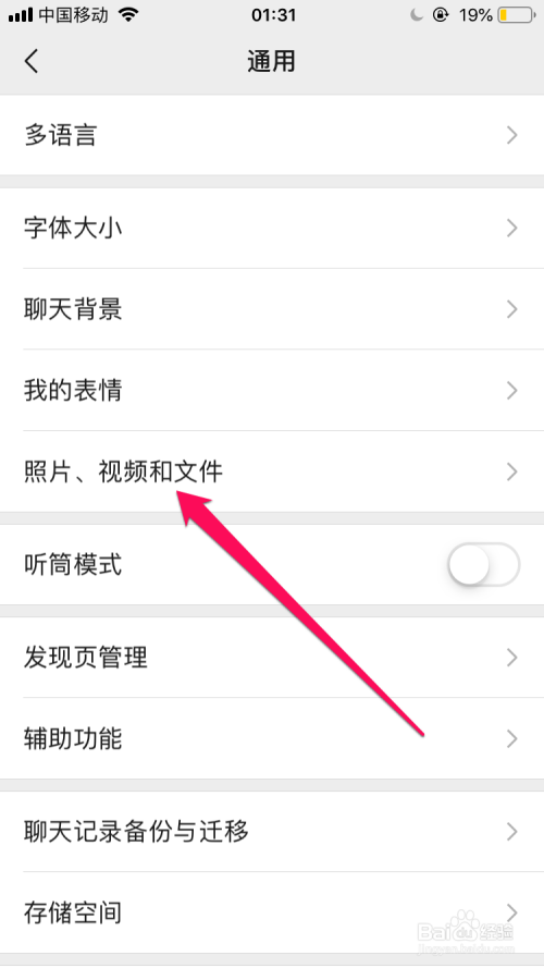 在通用的界面选项中点击“照片、视频和文件”选项。