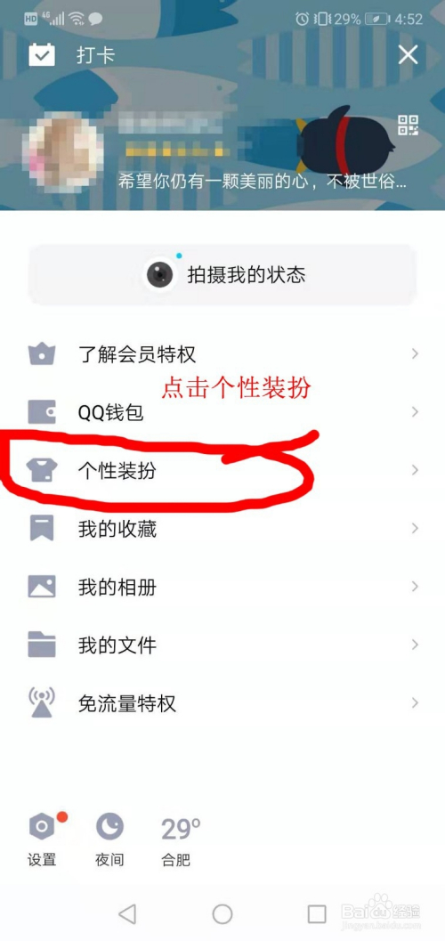 打开QQ软件,进入动静首页,点击左上角‘头像’图标,进入菜单页面